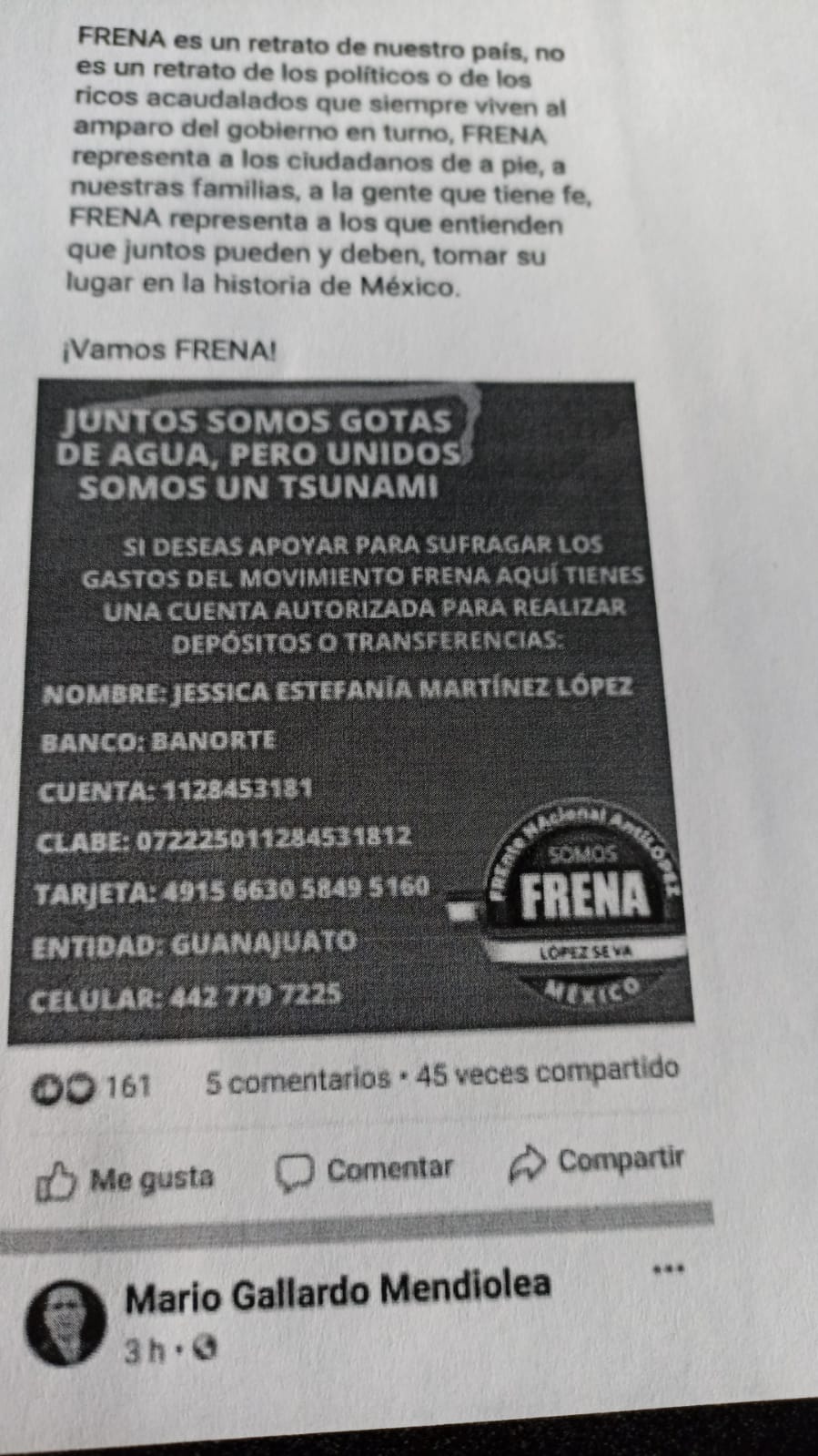 En FRENA hemos llegado a la conclusión de que el tal Mario Gallardo Mendiolea trabaja para MORENA, como disidencia controlada, pues busca reventar a los que luchan para DESPEDIR A AMLO.
